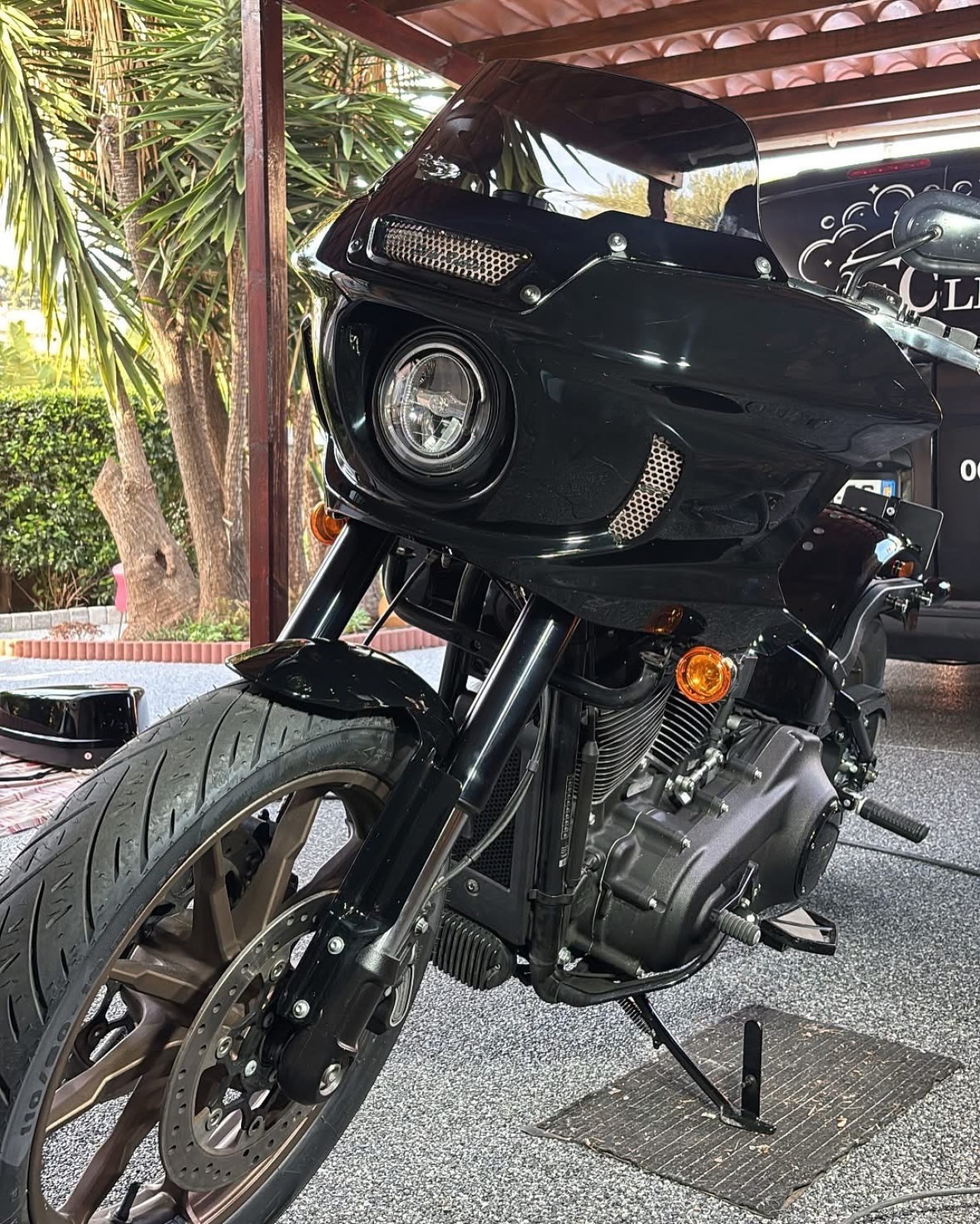 Cette Harley-Davidson Low Rider ST a été traitée avec le revêtement céramique Gtechniq CSL + Exo V5, offrant une protection durable contre les agressions extérieures tout en sublimant les finitions de la moto.